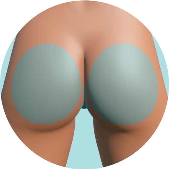 La depilación láser en los Glúteos remueve los vellos que se encuentran en la región posterior del muslo también conocida como trasero, así como los vellos que se encuentran en la parte interior de ambos glúteos (ver ilustración).